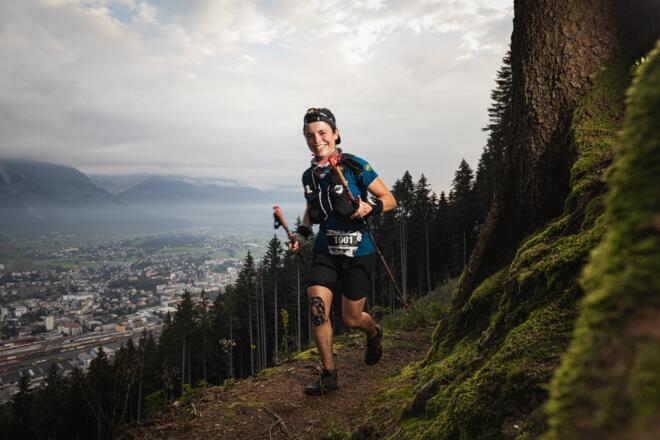 Am Ende diese Premiumabschnitts geht es hinab zur VS Grinzens (77km) und wir bereiten uns auf die 2. Inntalquerung vor. Über den Axamer Panoramerweg geht’s hinüber nach Birgitz und dann über fast gewohntem Weg hinüber nach Kranebitten zur nächsten VS (90km). Für den letzten Abschnitt solltet ihr euch definitiv noch ein paar Körner übrig lassen, denn statt oben beim Rauschbrunnen wie bisher auf der Höhe den Bärfallsteig anzupeilen geht es noch weiter hinauf über Aspachhütte auf den wunderschönen Durrachsteig über den Dächern Innsbrucks. Merke: Laufen und Schauen wird auch hier bestraft :D. Die letzten Höhenmeter sind geschafft und über die VS Höttinger Alm (100km) geht es durchaus technisch hinunter nach Innsbruck, wo dann endlich wieder der Zieleinlauf über die Europaratsallee und unserer Venue genossen werden darf.