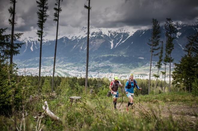 Am Ende diese Premiumabschnitts geht es hinab zur VS Grinzens (15km) und wir bereiten uns auf die Inntalquerung vor. Über den Axamer Panoramerweg geht’s hinüber nach Birgitz und dann über fast gewohntem Weg hinüber nach Kranebitten zur nächsten VS (28km). Für den letzten Abschnitt solltet ihr euch definitiv noch ein paar Körner übriglassen, denn erstmalig beim IATF geht es über den Rauschbrunnen hinaus noch weiter hinauf über Aspachhütte auf den wunderschönen, aber technisch wirklich anspruchsvollen Durrachsteig. Seitlich stark abschüssig und äußerst technisch sollte hier vorsichtig gelaufen werden. Die letzten Höhenmeter sind geschafft und über die VS Höttinger Alm (38km) geht es nochmals durchaus technisch hinunter nach Innsbruck, wo dann endlich wieder der Zieleinlauf über die Europaratsallee und unserer Venue genossen werden darf.