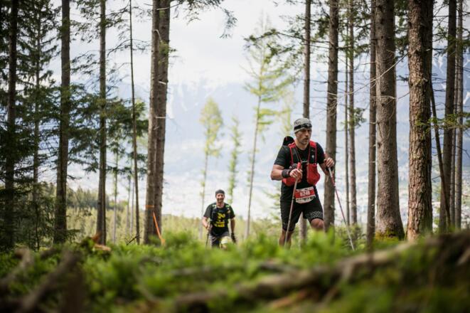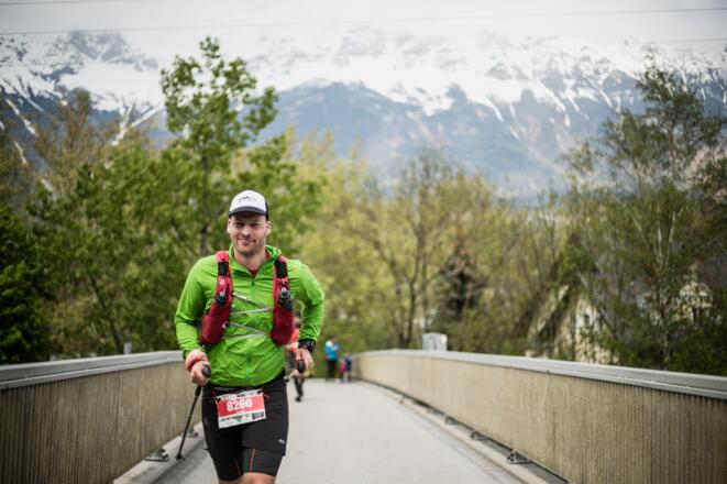 Hier trennt ihr euch das erste Mal von den K110er und lauft weiter direkt Richtung Innsbruck, vorbei am Birgitzköpflhaus, der eindrucksvollen Pfriemeswand hinunter zur VS Mutterer Alm (64km) und neben dem Bike Downhill hinunter nach Götzens, wo ihr die K110 wieder trefft und gemeinsam die Inntalquerung auf fast gewohntem Weg bis zur VS Kranebitten (75km) angeht. Knapp oberhalb am Rauschbrunnen trennt ihr euch wieder und für euch geht’s über gewohnten Wegen über den technischen Bärfallsteig, der VS Höttinger Bild (80km) und der Hungerburg hinab nach Innsbruck, wo dann endlich wieder der Zieleinlauf über die Europaratsallee und unserer Venue genossen werden darf.