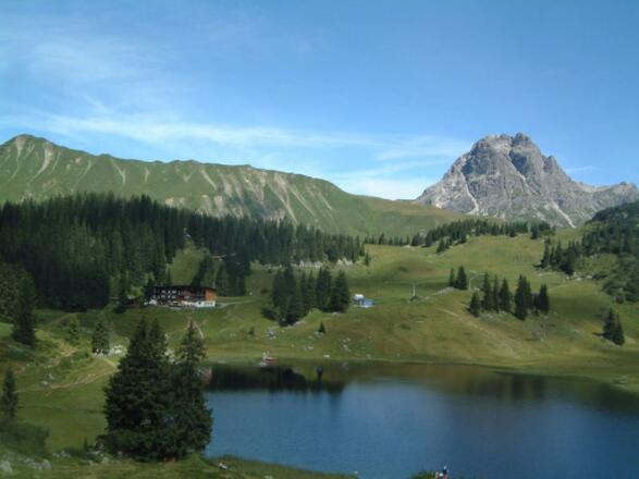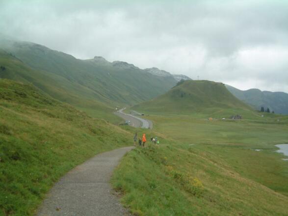 Von der Jägeralpe gehts zuerst auf der Salzstraße bis zum Hotel Adler. Links am Adlerfischteich vorbei Richtung Passhöhe. Ein kurzes Stück bis zum Kalbelesee am Wanderweg der links der Straße. Ab dem Körberkreuz auf dem schön angelegten Wanderweg vorbei am Falkenkopf und Juliusblick mit Blick nach Nesslegg zum Schön gelegenen Körbersee. Einkehrmöglichkeit im Hotel. Im Hintergrund die Imposante Braunarl, die sich mit Ihrem Gletscher im See spiegelt. Etwas links die Mohnenfluh und die Juppenspitze. Weiter gehts hinter dem Körbersee Richtung Nesslegg, Der Weg führt durch die Lawinenverbauung Blise hinunter nach Nesslegg und bevor man den Bach überquert auf der Almweide zur Straße. Ab der Steinig Wies läuft man ein kurzes Stück auf der Straße und dann bergan vorbei an der Alpe Wittele zum Kalbelesee und weiter vorbei an der Alpe Körb und Kuchel Alpe vorbei am Krumbacher Ried mit dem krummen Bach zur Jägeralpe