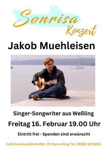Das Café Sonrisa in der Herrschinger Bahnhofstraße nimmt unter dem neuen Betreiber Nikolai Holzach das Kulturprogramm wieder auf, durch das es sich schon unter Cristian Ramirez Carrillo auszeichnete. Am Freitag, den 16. Februar steht Jakob Muehleisen auf der Bühne.