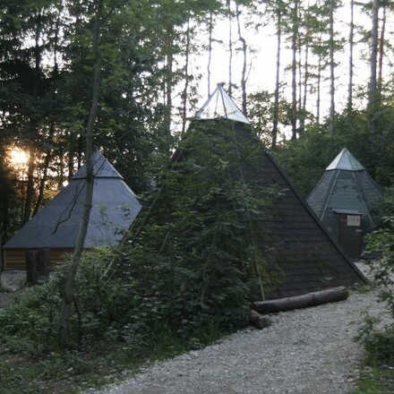 - Hüttendorf mit 5 Hütten und insgesamt 30 Schlafplätzen