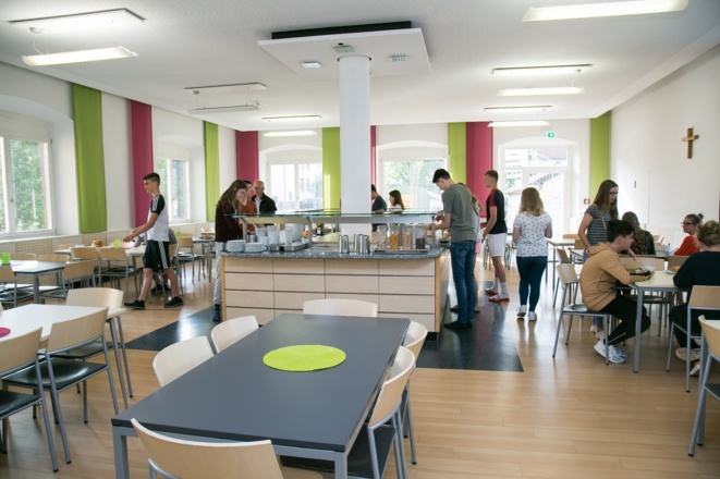 In unserem im mediterranen Stil gehaltenen Speisesaal bieten wir zu allen Mahlzeiten (Vollverpflegung inkl.) ein abwechslungsreiches Buffet. Das Haus St. Totnan kann als Selbstversorgerhaus (40 Betten) belegt werden. Alle notwendigen Utensilien für gemeinsame Kocherlebnisse, sowie eine Spülmaschine, sind vorhanden. Auch hier bieten Tagungsräume Platz für pädagogische Arbeit, aber auch zum Spielen, Basteln oder einfach nur Beisammensein.