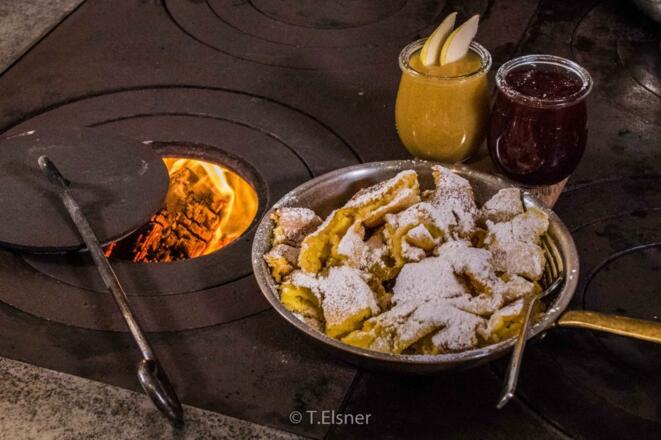 Kaiserschmarrn vom Holzofen serviert im schönen Bauerngarten oder in der gemütlichen Stube am Kachelofen.