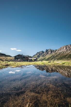 Vom öffentlichen Parkplatz Passhöhe geht es in zirka 30 Minuten Gehzeit in Richtung Seekarhaus.