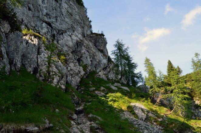 Bei Nässe sollte der Abstieg über die Mittereislam erfolgen, da der Weg über die Kammerlingalm dann sehr rutschig und unagenehm sein kann.