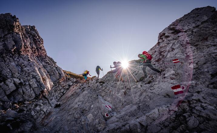 Die dritte und längste Etappe des Karwendel Höhenwegs führt die BergsteigerInnen über den Gipfelstürmerweg und den Goetheweg vom Solsteinhaus zur Pfeishütte. Der starke Kontrast zwischen dem wilden und schroffen Karwendelmassiv und dem besiedelten Inntal wird hier sehr deutlich.