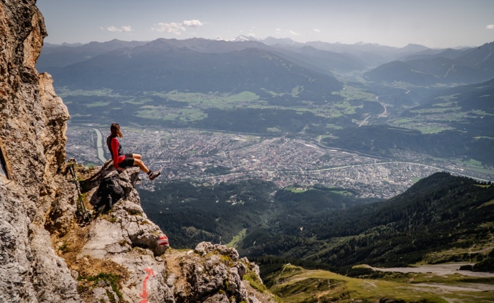 Variante (1): Da die Etappe, wie oben schon erwähnt sehr lange ist, empfehlen wir eine Pause mit Übernachtung in der einzigartigen Stadt Innsbruck, welche man von der Seegrube aus in 20 Minuten mit den Innsbrucker Nordkettenbahnen erreicht.