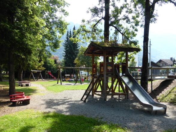 Gehe weiter auf der Zelfenstraße taleinwärts. Nach dem Parkplatz (gegenüber vom Hotel Cresta) biegst Du links in den August-Jochum-Weg ab. Es geht leicht bergab. Am Ende des Weges befindet sich der Spielplatz "Au". Anschließend führt der weitere Wegverlauf auf der rechten Seite der Ill taleinwärts bis zum Aktivpark Montafon. Der Aktivpark Montafon hat einiges zu bieten. Ein Erlebniswald mit Spielplatz, das Alpenbad Montafon bzw. das Erlebnisreich unter den weißen Zelt-Kuppeln. Nun führt der Weg über die Illbrücke und weiter durch die Unterführung auf die andere Straßenseite Richtung Schruns. Nach dem Fußballstadion folgt die nächste Weggabelung, wo Du nach rechts ins Schrunser Feld abbiegst. Der Weg führt vorbei am Landeplatz der Paragleiter taleinwärts, vorbei an einem kleinen Holzhaus bis zum Wegweiser (ca. 100 m nach dem Stall). Zweige beim Wegweiser nach links ab und folgen dem Weg bis an sein Ende. Bei den ersten Wohnhäusern biegst Du erneut nach links ab und kurz darauf erreichst Du den Veltlinerweg. Biege dann nach rechts ab und nach ca. 150 m wieder nach links. Du befindest Dich nun beim Löwen Hotel Montafon. Von hier ins Ortszentrum, durch die Fußgängerzone und "Gässle" zum Ende der Fußgängerzone (Silbertalerstraße). Hier biegst du links ab Richtung Bahnhof. Kurz darauf erreichst Du wieder das Tourismusbüro Schruns.
