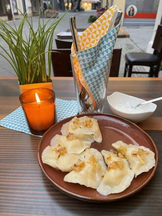 Kinza Gastrohaus - unsere Gäste können entweder altbekannte Gerichte probieren oder gastronomische „Erfahrungen“ mit einigen traditionellen ukrainischen, regionalen Gerichten aus Odessa und der georgischen Küche machen, ohne das Zentrum von Bad Reichenhall zu verlassen. Warenyki, Pelmeni, Khatschapuri, Borschtsch und andere Spezialitäten. Hausgemachte Wodka-Liquor Khrenovukha un Perzowka - Meerettich oder Chilli-pfeffer Ukrainische Wodka