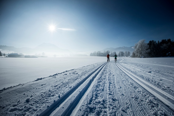 Schöne sonnige Loipe zwischen Schliersee und Hausham - größtenteils einfach mit einem steileren Anstieg über den Kirchbichl.