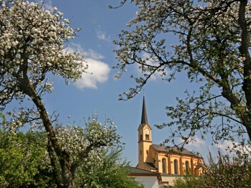 Die katholische Pfarrkirche in Chieming wurde 1885 eingeweiht und nach Plänen des Architekten Johann Marggraff im neuromanischen Stil erbaut. Im Glockenturm der Kirche sind drei römische Weihesteine eingemauert. Zwei Weihesteine sind dem Wassergott Bedaius sowie einer den erhabenen Alaunen geweiht.-------------------------------------Gefördert als Projekt in der LEADER-Region Chiemgauer-Seenplatte durch das Bayerische Staatsministerium für Ernährung, Landwirtschaft und Forsten und den Europäischen Landwirtschaftsfonds für die Entwicklung des ländlichen Raums (ELER) im Rahmen des LEADER-Programms