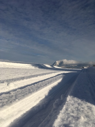 Einfache Einstiegsrunde mit Panoramablick in die Allgäuer Alpen. Die Nutzung der Loipe ist kostenfrei.
