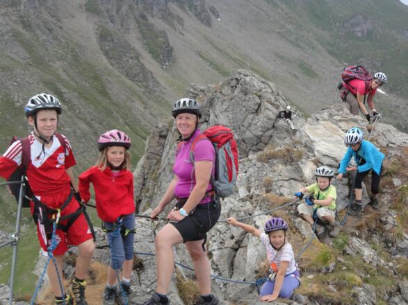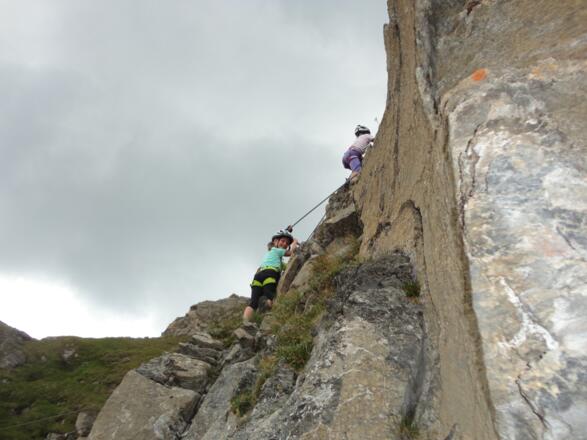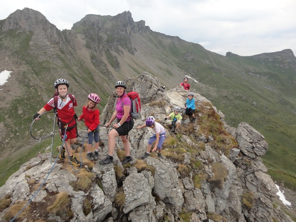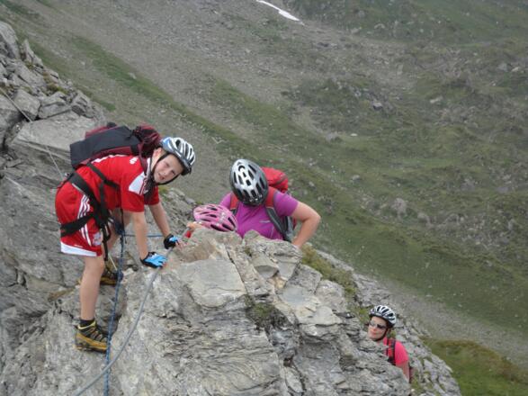 Anseilgurt, Klettersteigsicherung und Helm sind unbedingt erforderlich! Für Anfänger empfehlen wir die Begleitung eines Bergführers.