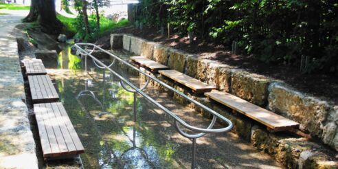 Idyllisch neben einem Spielplatz gelegene Kneipp-Anlage zum Anregen des Kreislaufs durch Wassertreten im "Storchengang" nach den Lehren von Kneipp. Nur wenige Meter davon entfernt finden Sie zudem den Obst- und Bienenlehrpfad vor.
