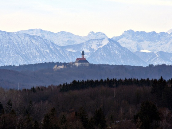 Kloster Andechs ging aus der Burgkapelle der Grafen von Andechs-Meranien hervor, in der im 9. Jh. Reliquien aus dem Heiligen Land Einzug hielten und somit eine der ältesten und bedeutendsten Wallfahrten in Deutschland begründeten. 1246 zerstörten die Wittelsbacher die Burg, ließen Ende des 14. Jahrhunderts jedoch an deren Stelle ein Augustiner Chorherrenstift errichten und verliehen dem Ensemble auf dem Hügel offiziell den Namen „Heiliger Berg“. 1751–55 wurde die Kirche von berühmten Künstlern dieser Epoche im Rokokostil umgestaltet. Hier findet sich auch die größte deutsche Votivkerzensammlung sowie die Grablege von Carl Orff. Berühmt ist das Kloster auch für sein selbst gebrautes Bier und deftige Brotzeiten aus den eigenen Wirtschaftsgütern.