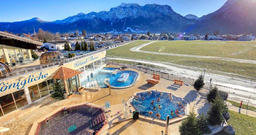König Ludwig II erwählte für sein Schloss Neuschwanstein die schönste Gegend seines Bayernlandes. Im Antlitz der Königsschlösser entstand für unsere Gäste eine wahrhaft königliche Kristall-Therme. Sie erleben königliches Ambiente als Fortsetzung der Badeträume des Märchenkönigs. Die Architekten der Therme haben aus König Ludwigs Schlössern Höhepunkte der Gestaltung übernommen und eine Therme modernster und höchster Badekultur geschaffen.