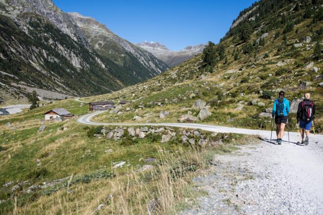 über Serpendinen und Aussichtskanzeln den Krimmler Wasserfallweg hoch - anschließend führt ein fester Schotterweg ins Krimmler Achental;