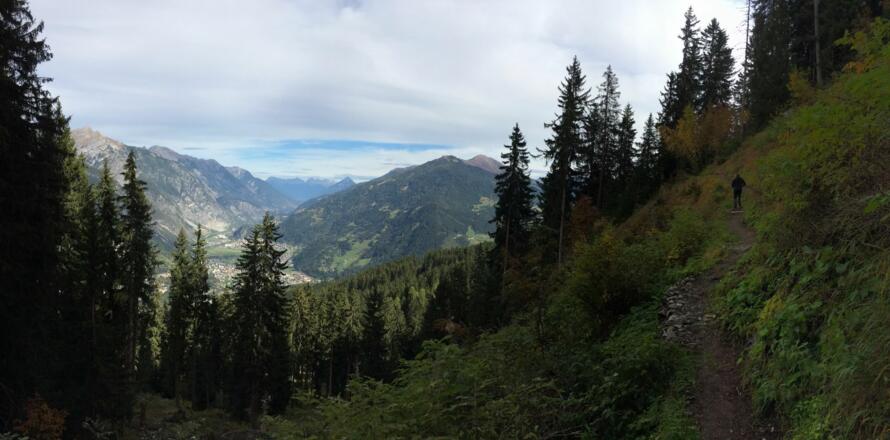 Von der Gerberbrücke nach Perfuchs und weiter über Perfuchsberg gelangen wir auf den Thial, ein breiter Waldrücke mit vielen zum Teil nicht bewirtschaftetetn Bergwiesen. Bis in eine Höhe von 1.500 m folgt man einem Forstweg auf dem man leicht und zügig vorankommt. Dann führt der Weg in einer Variante zum Weg 18 nach rechts und geht über den Forstweg nach Westen. In einer Kehre zweigt der Dreilalliweg (Beschilderung) ab, der den Wanderer entlang des Waalweges bis zur Flathalm bringt. In einer Stunde Gehzeit erreicht man von der Alm das Zirmegg. Zurück nach Landeck kann man entweder gleich wandern oder den Weg über die Perfuchser Schihütte verwenden.