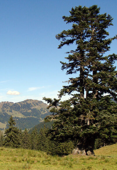 Gegen Ende der Tour kann anstelle des Weges an der Bolgenach entlang auch eine etwas höher am Hang gelegene Variante gewählt werden. Dann führt die Route an der Lappach-, der Höfle- und der Schelpen-Alpe vorbei und gibt nochmals einen schönen Einblick in die landschaftsprägende Alpwirtschaft.