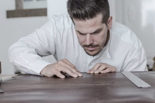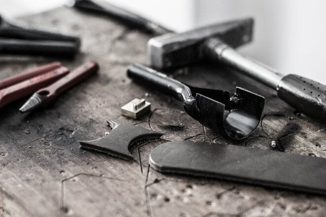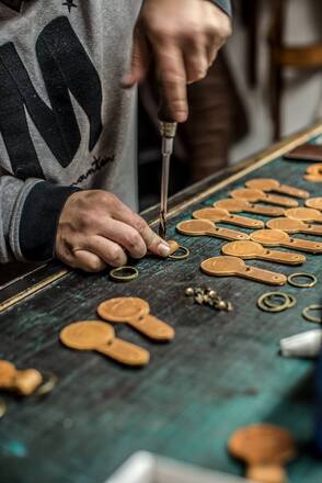 Dicke Mauern, viel Licht und reichlich Holz vor der Hütte schaffen hier eine geradezu ideale Arbeitsatmosphäre und einen kreativen Raum für sein Kunsthandwerk. Klaus Lerner fertigt Liebhaberstücke, Unikate mit eigenem Charakter, die ihren Besitzer womöglich ein ganzes Leben lang begleiten. Das Leder ist aus regionaler Herkunft, die Metallteile und Stoffe in ausgesuchten Betrieben von Hand gefertigt. Leidenschaft für beständiges Material, traditionelle Handarbeit und kreatives Design treffen hier harmonisch aufeinander.