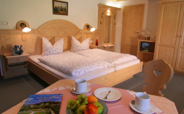 Unser Bauernhof liegt umgeben von der Ramsauer Bergwelt in sonniger Höhe. Freundlich, eingerichtete Zimmer, Gästekühlschrank. 2 Appartements für jeweils 2 - 4 Personen ab 30 €.