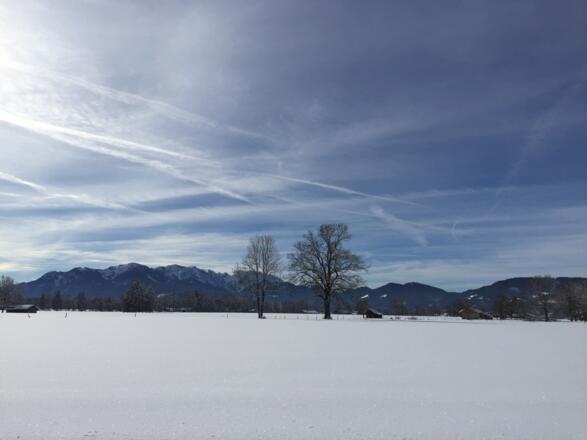 Toller Blick zu den Lenggrieser Bergen und ins Karwendel.