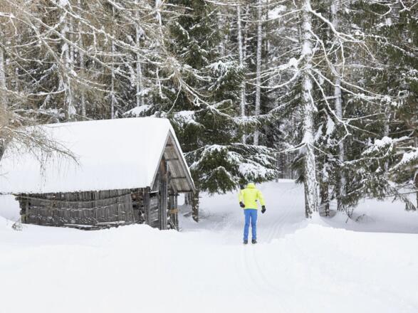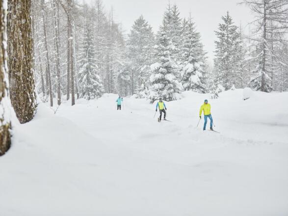 Die klassisch gespurte Übungsloipe beginnt am Parkplatz Gemeindeamt in Obsteig. Die einfache Runde von zwei Kilometern ist besonders gut für Anfänger geeignet.
