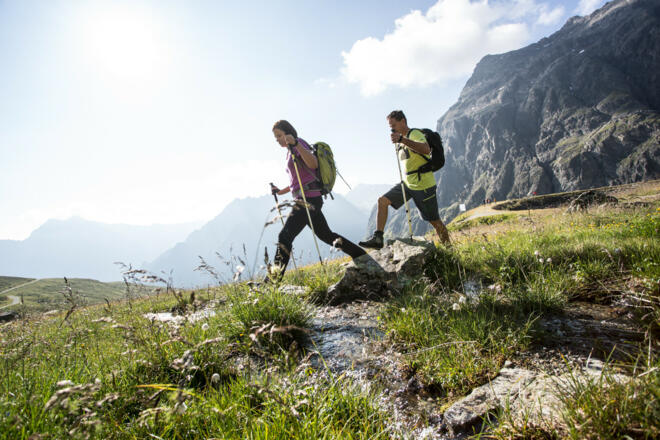 Die zweitägige Tour startet an der Talstation der Gargellner Bergbahnen und führt am Fluß entlang über den Ortsteil Vergalda zur Madrisahütte am Eingang des Valzifenztales. Nach Überquerung des Flusses geht es auf einer Schotterstraße leicht ansteigend tiefer ins Valzifenztal hinein. Kurz darauf erreichst Du die Untere Valzifenzalpe. Du bist auch auf dem Routenabschnitt der bekannten ViaValtellina unterwegs. Die obere Valzifenzalpe erreichst Du nach 35 Minuten. Aber der oberen Valzifenzalpe wird der Anstieg etwas intensiver. Entlang eines schmalen Bergpfades geht es stetig nach oben, bis Du die Grenze beim Schlappiner Joch erreichst. Die Weiterwanderung erfolgt anschließend auf Schweizer Boden. Der Abstieg und Dein Etappenziel für diesen Tag ist die Bergstation Madrisabahn. Eine Reservierung zur Übernachtung wird frühzeitig empfohlen.