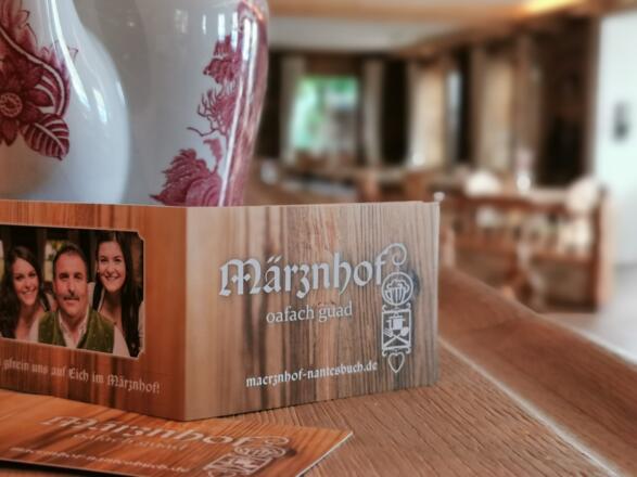 Ein Geheimtipp ist er schon lange nicht mehr, aber nach wie vor eine absolute Besonderheit. Sei es die herrliche Etagere zum Frühstück, der grandiose Blick auf die Alpenkette, die feinen Speisen, die köstlichen selbst gebackenen Kuchen oder der Märznhof an sich. Dieser befindet sich nämlich im ehemaligen Stadl der direkt angeschlossenen noch aktiven Landwirtschaft des Familienunternehmens. Von der Oma gibt’s alle 14 Tage selbst gebackenes Brot. Und in der Küche des Märznhofes werden regionale Zutaten verarbeitet, sofern sie nicht sogar aus der eigenen Landwirtschaft stammen. Rundum ist der Besuch im Märznhof ein Gesamterlebnis. Von der Geschichte des ehemaligen Stadls erzählen nur noch die historischen Bilder an den Wänden der ansonsten sehr geschmackvoll modern aber zugleich kulturell-historisch eingerichteten Räumlichkeiten. Was den Gästen positiv in Erinnerung bleibt, frage ich die sympathische Michaela Höck, Tochter der Chefin? „Die Herzlichkeit des jungen Teams“, antwortet sie und strahlt mich an. Ja, das schmeckt man und das spürt man im Märznhof. Ein Ausflug hierher, sei es zum Frühstücken, zum Mittagessen, zum Kaffee und Kuchen oder auch mal für ein paar Nächte in der Ferienwohnung, ist ein garantiert rundum beeindruckendes Erlebnis