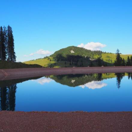 Von der Bergstation der Almbahn II vorbei am Soderkaser und dem Almspielplatz. Nach dem Spielplatz links und dann gleich wieder rechts abbiegen auf den Wanderweg Richtung Grubhörndl/Schönbichl. Über den Märchenwald erreicht Ihr das Wanderziel: Den roten Marmorsee mit einer Wasserfläche von ca. 1700m². Vorbei am "Sender" auf dem Schönbühel und über die Almstraße zurück zum Startpunkt.