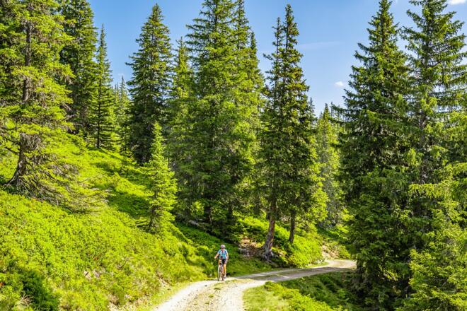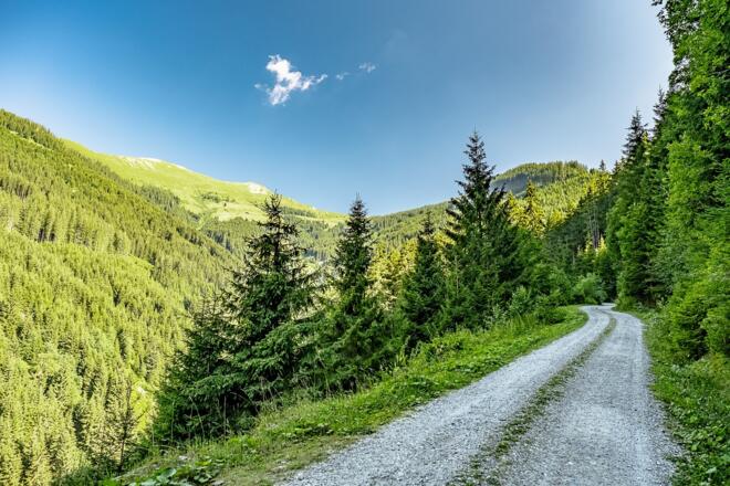 Piesendorf - Tauernradweg bis Walchen - bei der Kirche rechts abbiegen zum Naglbauer - bei der letzten Kehre vorm Naglbauer rechts abbiegen Richtung Mittereggbauer - die Forststraße weiter bis zur Hochsonnbergalm - kurz vor der Alm rechts abzweigen zur Pinzgauer Hütte. Der Rückweg erfolgt auf dem gleichen Weg.