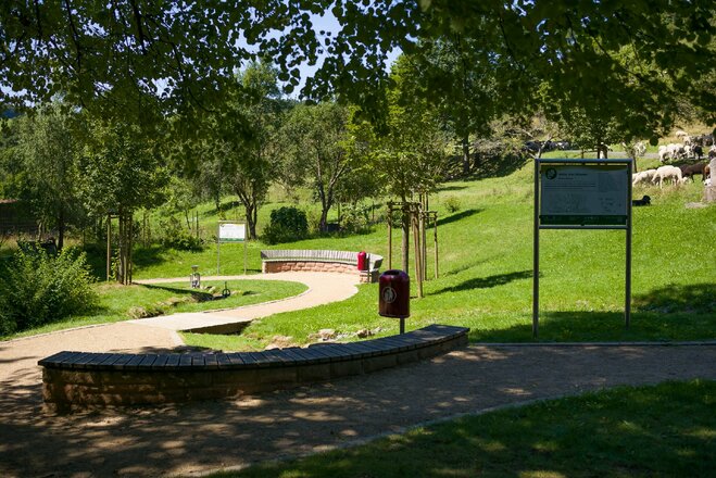 - laufen Sie nach rechts und folgen der Markierung bergab bis zu Wassertretanlage am Gänsbrunnen.