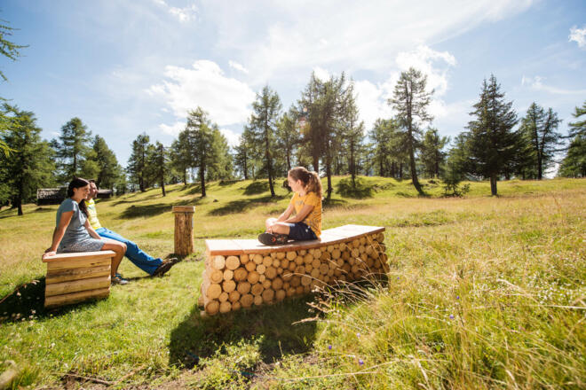 Sie spenden Schatten, lassen aber noch genug Licht hindurch für den Unterwuchs. Die Lärchen auf den Eulenwiesen ermöglichen eine geschützte Blumenvielfalt (Küchenschelle, blauer Enzian, Arnika, …) und geben Bürstlingsrasen und Zwergsträuchern Platz. Entstanden sind diese „Larchbergmahder“ durch Brandrodung. Die Bauern brauchten aufgrund der vielen Überschwemmungen im Talboden neue Weideflächen und suchten diese auf knapp 1.700 Metern Seehöhe. Während Fichten und Kiefern dabei verbrannten, loderten die Lärchen nur äußerlich und trieben im nächsten Frühjahr wieder aus. Erhalten bleiben solche Naturschauplätze nur durch aufwendige Pflege und Bewirtschaftung der Bauern. Einmal im Jahr werden die Eulenwiesen daher mit Handmäher und Sense gemäht.