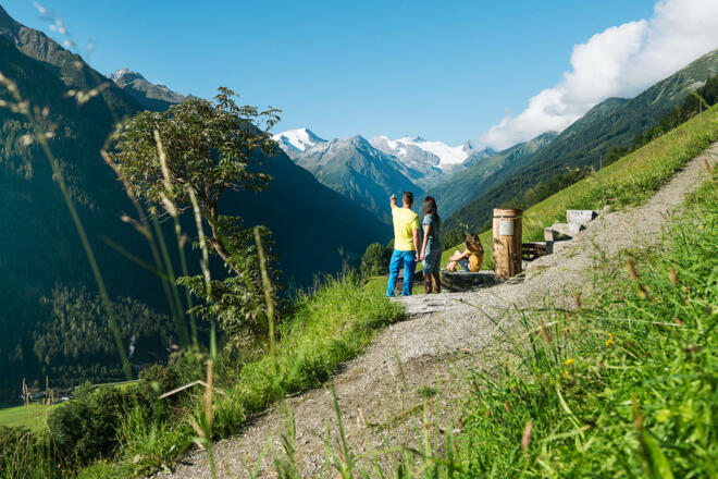 Die Gehöfte in Kartnall gehen auf im 13.Jahrhundert aus Furcht vor Überschwemmungen über dem Tal gerodete landwirtschaftliche Flächen zurück. Vom Freizeitzentrum Neustift laufen wir auf dem Fahrweg in Richtung Freibad und erreichen den von April bis Oktober begehbaren Pfad nach Kartnall. In Serpentinen durchqueren wir ein Waldstück. Nachdem sich der Wald gelichtet hat und der Wanderweg sich sanft ansteigend den Gehöften in Kartnall nähert, erreichen wir nach ca. 45 Minuten den inmitten grüner Wiesen gelegenen Naturschauplatz Kartnall mit herrlichem Panoramablick hinein bis zum Sulzenauferner. Die auf 1.285 m gelegenen Jausenstation Kartnall und Jausenstation Hofer laden mit Tiroler Köstlichkeiten zur Rast ein. Von den Kartnallhöfen folgen wir der Fahrstraße bis zum Bergbauernhof Forchach oberhalb von Milders. Bei trockenem Wetter steigen wir von dort links über einen Steig Richtung Milders ab. Bei nasser Witterung und außerhalb der Sommersaison folgen wir hingegen der Fahrstraße Richtung Oberbergtal. Ab dem Kleinkraftwerk Milders wandern wir entlang dem Oberbergbach. An der Mündung des Oberbergbachs in die Ruetz folgen wir dem Spazierweg zurück ins Ortszentrum von Neustift.