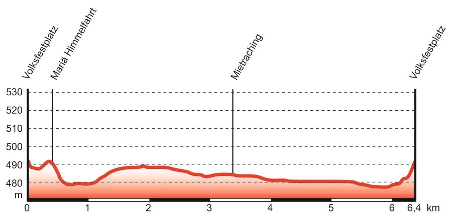 Vom Volksfestparkplatz oberhalb der Stadt zur Stadtpfarrkirche Mariä Himmelfahrt. Über den Hofberg hinunter zum Mühlbach. Rechts weiter bis zur Thürhamer Straße, diese überqueren und hinauf zum Josef-Hochwind-Weg. Dem Weg bis Mietraching in den Ortskern folgen. Über den Niederfeldweg zurück nach Bad Aibling Thürham. An der Glonn entlang, am Sportplatz vorbei zum Stadtkern mit Marienplatz und Rathaus. Von dort den Ratholdussteig hinauf zum Ausgangspunkt.