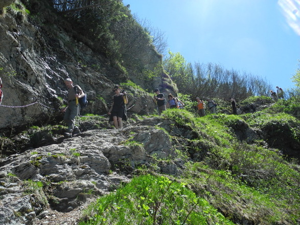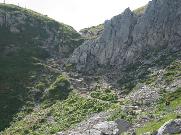 Start am Liftparkplatz in Tannheim, mit der Gondelbahn zur Bergstation, kurzer Aufstieg zum Neunerköpflegipfel. Weiter Richtung Strindenalm auf dem Forstweg bis zur Gappenfeldalm. Aufstieg zur Schochenspitze herrlichen Ausblick: Vilsalpsee, Traualpsee, Lache und die unzähligen Gipfel der Allgäuer und Lechtaler Alpen. Nach dem Schochen auf Edelweiß und Alpenastern achten. Abstieg zur Landsberger Hütte, nach der Brotzeit weiter zum Traualpsee, Achtung oft rutschiger Felspfad mit Halteseil. Der Weg zum Vilsalpsee ist grob schotterig, mit dem Bus zurück nach Tannheim.