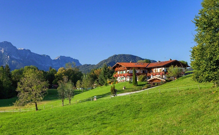 Genießen Sie Ihren Urlaub an einer der schönsten Lagen in Berchtesgaden! Schönes Gästehaus in ruhiger, sonnigen Alleinlage in mitten von grünen Wiesen und herrlicher Aussicht auf das Bergpanorama. Alle Wohnungen sind im gemütlichem Landhausstil eingerichtet. Tiefgarage, Wasch-Trockenmaschine, Sauna, Kinderspielplatz, Tischtennisraum, Streicheltiere vorhanden. Auf Wunsch bieten wir täglich frische Brötchen. Sonderangebot: Vor- und Nachsaison.