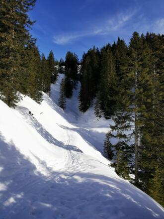 Der Anstieg zum Gipfel kann bei Neuschnee etwas kritisch sein.