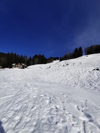 Abfahrt über Skipiste - am Schluss kurzes Stück Gelände.