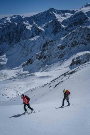 Unten entlang der Piste, oben durch hochalpines Gelände. Auf der Skitour auf den Nördlichen Daunkogel im Stubaital ist Schneesicherheit und geniale Aussicht garantiert.