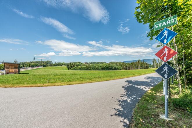 Unmittelbar am Parkplatz beginnen der bekannte Schaukelweg und der etwas kleinere Granitweg. Eingebettet in das Nordische Zentrum liegt die Kaiseralm direkt am Einstieg zur Skirollerbahn und den Langlaufloipen Jägerbild.