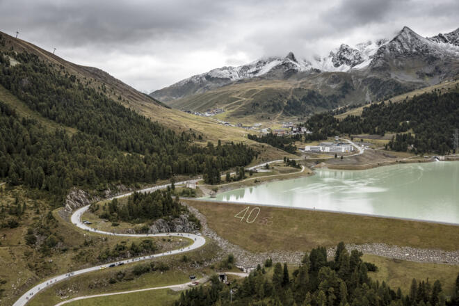 Start in Sölden – Oetz 800m – Kühtai 2020m – Innsbruck 600m – Brennerpass 1377m – Sterzing 960m – Jaufenpass 2090m – St. Leonhard im Passeiertal 700m – Timmelsjoch 2474m – Sölden 1377m.