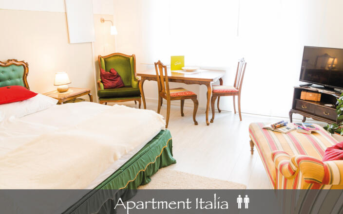 Zu Ihrer Wahl stehen das Apartment Britannia mit ca. 60qm und reichlich Platz für 4 Personen und das Apartment Italia, ein Studio-Apartment mit ca. 30qm, in welchen sich 2 Personen rundum wohlfühlen werden.
