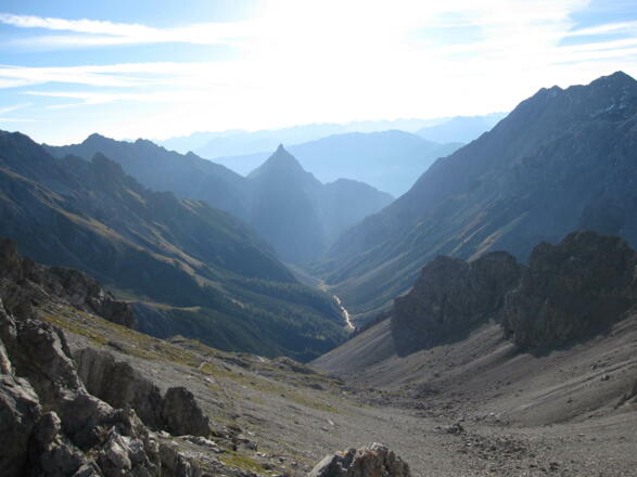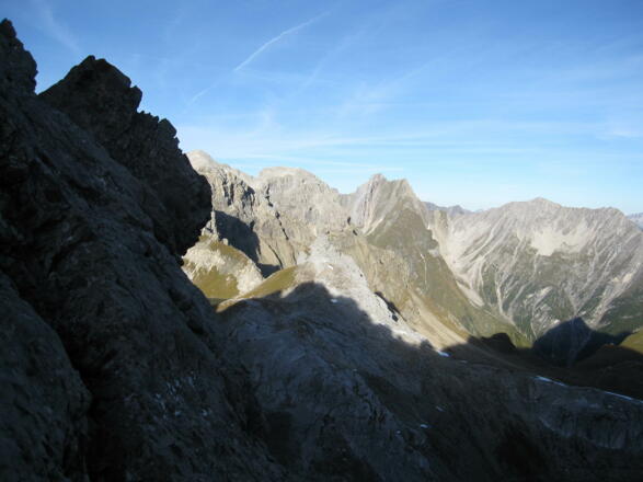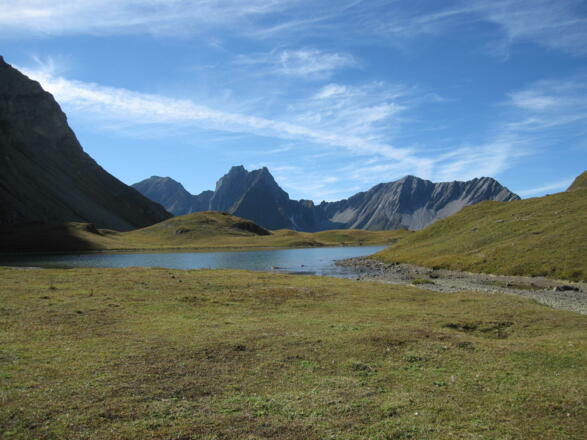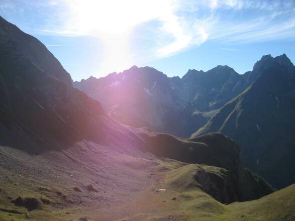 Von der Augsburger Hütte auf die Parseierspitze, dem mit 3.036m höchsten Gipfel der nördliche Kalkalpen und Hauptgipfel der Lechtaler Alpen. Normalweg über die Südflanke, II- Kletterei (nicht abgesichert, teils steinschlaggefährdet). Über die Patrolscharte 2.846m (drahtseilversicherter Steig) hinab Richtung Parseierjoch (Achtung Steinschlaggefahr! ). An den Seewiseen vorbei zur Memminger Hütte (Einkehr) und Abstieg nach Zams.