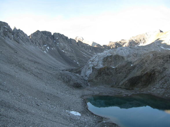 Nach einer Nacht auf der Augsburger Hütte (Aufstieg von Grins Hüttenparkplatz am Vortag) geht's auf die Parseierspitze, dem mit 3.036m höchsten Gipfel der nördliche Kalkalpen und Hauptgipfel der Lechtaler Alpen. Über das Gasilltal (Geröll) geht man über die versicherte Fernerwand direkt Richtung Grinner Ferner zum Einstieg der Parseierspitze. Der Normalweg führt über die Südflanke, II- Kletterei (nicht abgesichert, teils steinschlaggefährdet); alternativ über den Ostgrat (II+). Den guten Markierungen folgt man zum Gipfel. Nach einer ausgiebigen Gipfelrast, damit man den überragenden Ausblick über die Lechtaler Alpen (z.B. Freispitze 2884m) genießen kann, zurück wie Aufstieg. Am Fuße der Parseier (Grinner Ferner) angekommen geht es weiter Richtung Patrolscharte 2.846m. Anschließend den drahtseilversicherten Steig hinab Richtung Parseierjoch (Achtung Steinschlaggefahr!). Ab hier annähernd höhengleich dem Pfad (Spiehlerweg 633) folgend (unterhalb) vorbei an Schaf- und Bärenscharte, bis es die Wegscharte (Felsgelände) hinauf zum Punkt 2585m geht. Nun immer bergab Richtung Oberer Seewisee 2.496m. Der vom Seeköpfle 2.562m umrahmte Seewisee bietet einen tollen Anblick und lädt zu einer kurzen Abkühlung ein, alternativ kann man noch das Köpfle besteigen. Weiter geht es auf den Spiehlerweg, vorbei an dem Mittleren Seewisee und Unteren Seewisee zur Memminger Hütte 2.242m. Nach einer kurzen Rast folgt man den Weg zurück Richtung Mittlerem Seewisee und zweigt vorher auf den E5 über die Seescharte 2.599m ab und folgt diesem bis nach Zams. Von hieraus kann man den Bus zurück nach Grins (Hüttenparkplatz) nehmen.