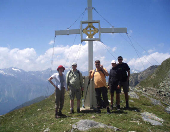 Vorbei am alten "Sennhof" geht man Richtung Bergmähderweg und taleinwärts ca. 2,3 km bis links bei einer Kapelle ein Weg Richtung Gruesee abzweigt. Nun kommt ein steiler, südseitiger Weg. Man sollte an heißen Tagen darauf achten, genügend Tinkpausen zu machen, da man der Sonne sehr ausgesetzt ist. Nach einem Plateau geht es nochmals sehr steil zu einem der schönsten Aussichtspunkte des Horlachtales. Von dort sieht man auch die gegenüberliegenden Seitentäler: Larstigtal und das Grastal. Dem Peistakamm entlang folgend erreicht man das Kreuz am Peistakamm.