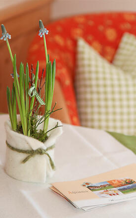 Genießen Sie unser reichhaltiges Frühstücksbuffet und am Abend ein feines Menü mit frischen Zutaten aus unserem Kräutergarten. Gerne berücksichtigen wir auch Ihre Diat- bzw. Schonkostwünsche.Entspannung und Erholung bietet Ihnen unsere Wohlfühlsauna oder erleben Sie eine Auszeit in unserem Kaffeestüble bzw. auf der Terrasse in unserem schön angelegten Garten.