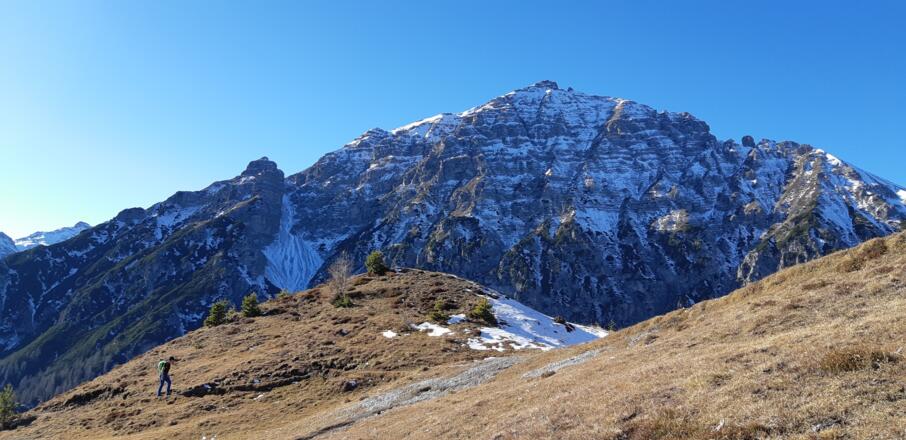 Schöne Wanderung mit Blick auf den eindrucksvollen Ampferstein, die Saile und die Berge des Wipptales.