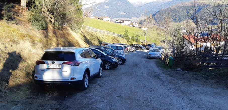 Am Ende der Straße ein paar wenige Parkmöglichkeiten, weitere Parkmöglichkeit entlang der Straße und in einigen Ausweichen.
